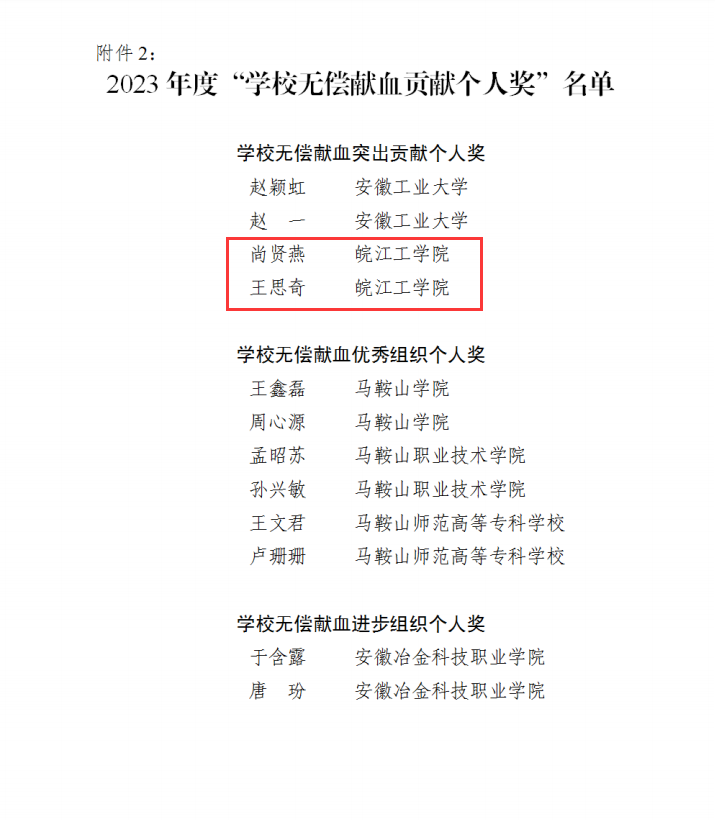 近日,beat365官网在无偿献血工作中取得显著成绩,荣获2023年度“无偿献血工作先进集体奖”二等奖,同时,校团委书记尚贤燕、郑蒲港校区管委会主任助理王思奇获2023年度“无偿献血突出贡献个人奖”的称号。