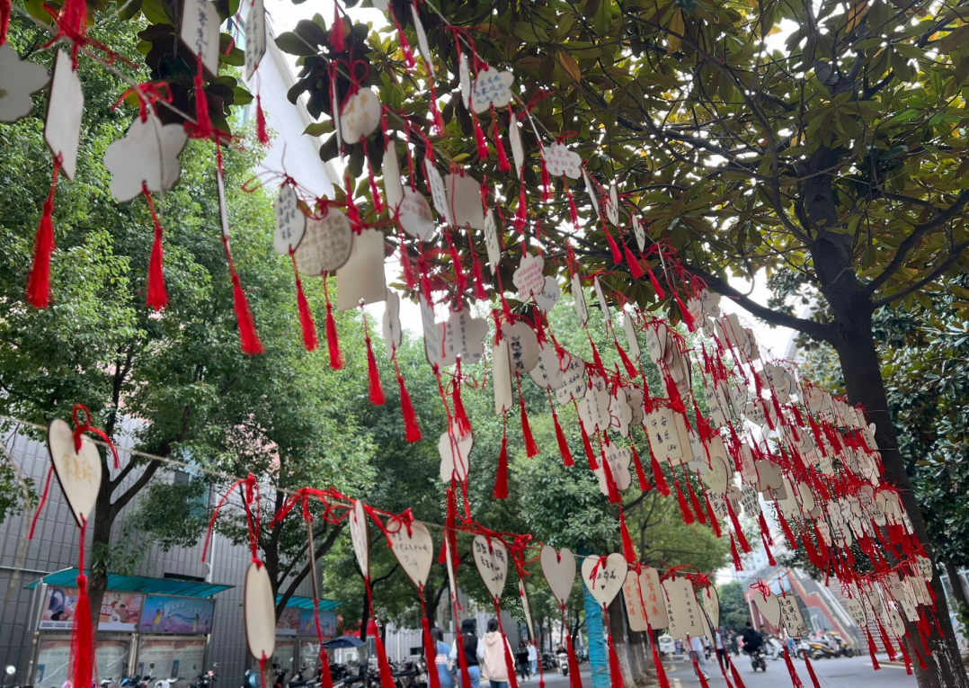 霍里山校区举办了“许下未来心愿”活动。心委会成员在校区内摆放宣传板,引导同学们在许愿卡上写上自己的心里话与心愿,并将卡片悬挂在校园内展出。活动吸引了来往同学的广泛关注,大家纷纷驻足观看,并拿起笔在许愿卡上写下自己的愿望,表达自己对于未来生活的憧憬、希冀。