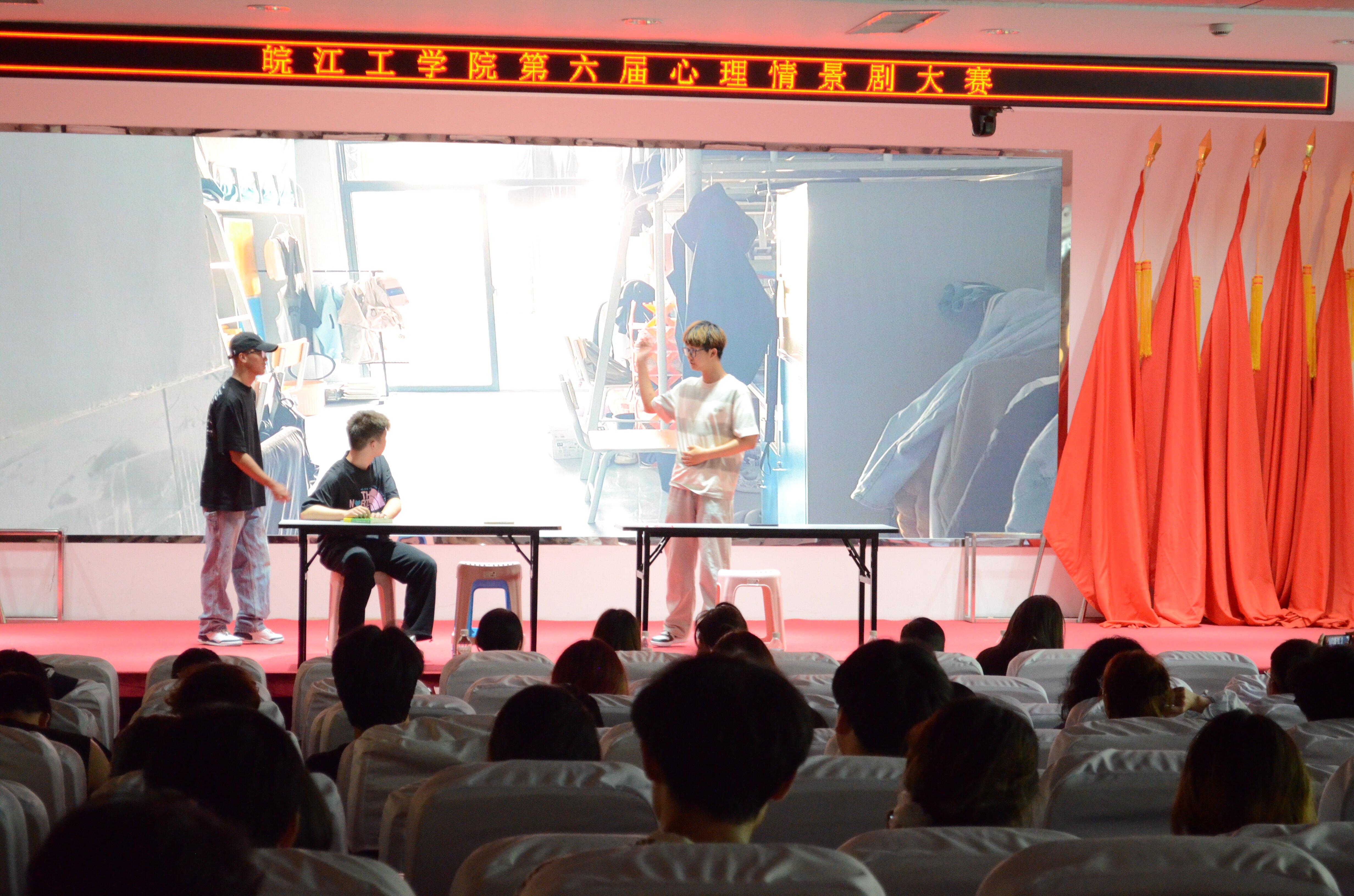 此次心理情景剧大赛作为学校5·25心理健康月的特色品牌活动,自开办以来,受到广大师生的热情关注。各学院选手踊跃参与,经过激烈地角逐,最终有九组作品突出重围,进入决赛。比赛现场氛围热烈,生动有趣的表演令现场观众掌声不断。