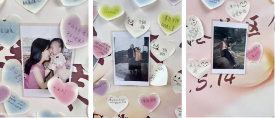 活动现场精心布置的留言板成为情感传递的纽带,同学们纷纷停下脚步,拿起纸笔,将平日里藏在心底的爱意诉诸文字,内容包括但不限于妈妈常对你说的一句话、你最想对妈妈说的话、和妈妈在一起印象最深刻的小故事等等。随后心委会将参与者提供的照片打印出来,和贺卡一同贴在留言板上,这些文字和照片流露了母子间真挚的爱意。活动中有学生表示:“平时羞于当面表达,今天终于有机会把心里话写下来,希望妈妈能够知道,她的爱一直是我最温暖的港湾!”