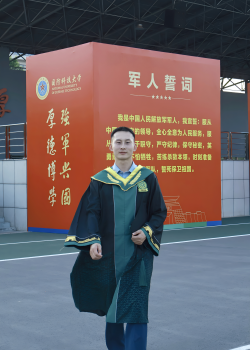 在校期间作为专业班长,服务同学,协助老师,积极主动,敢于担当,获得“优秀毕业生”,“优秀班干部”等荣誉。毕业后应征入伍,投身国防事业。2022年获得“四有优秀士兵”。2024年通过“优秀大学毕业生士兵提干”考入国防科技大学,完成从士兵到军官的身份转变,毕业后进入解放军某英雄部队,担负东南枢纽,剑指台岛的光荣使命。