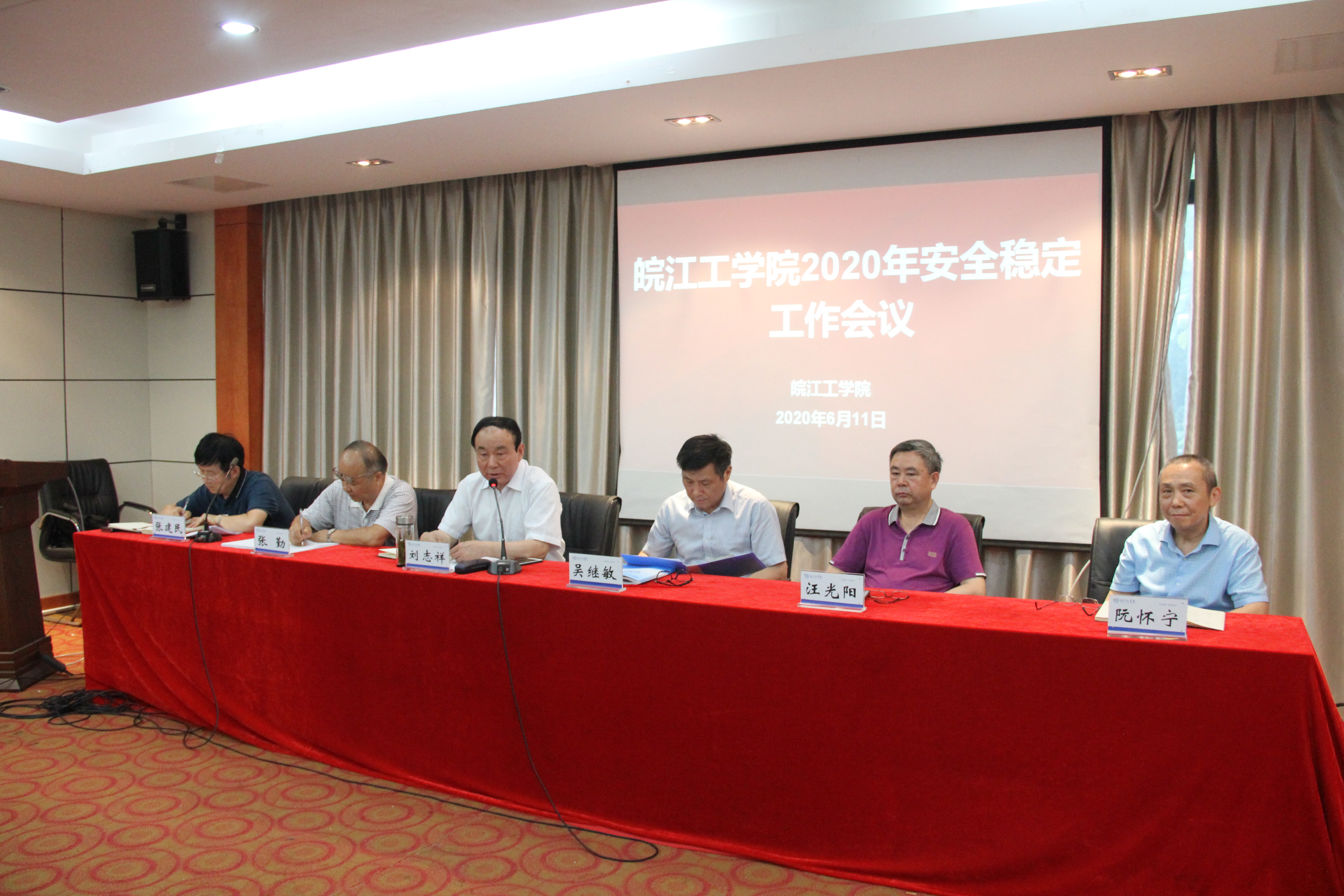 2020年6月11日下午,beat365正版唯一入口必一2020年安全稳定工作会议在霍里山校区召开。校党委书记刘志祥出席并做重要讲话。校长吴继敏,校党委副书记张勤,副校长张建民、阮怀宁,所有中层干部参加会议。会议由张建民主持。