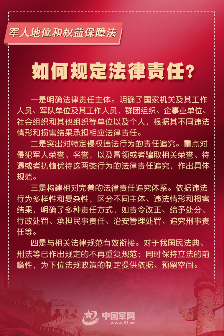 6月10日,十三届全国人大常委会第二十九次会议表决通过《中华人民共和国军人地位和权益保障法》,国家主席习近平签署第八十六号主席令予以公布,自2021年8月1日起施行。这是军人地位和权益保障的基础性、综合性法律,是深化国防和军队改革的重要成果。这部法围绕军人地位和权益保障的基本原则和基本制度作出了哪些规范?中国军网推出专家系列解读,阐释重要规定内涵和深层考量,快来一起看看吧。