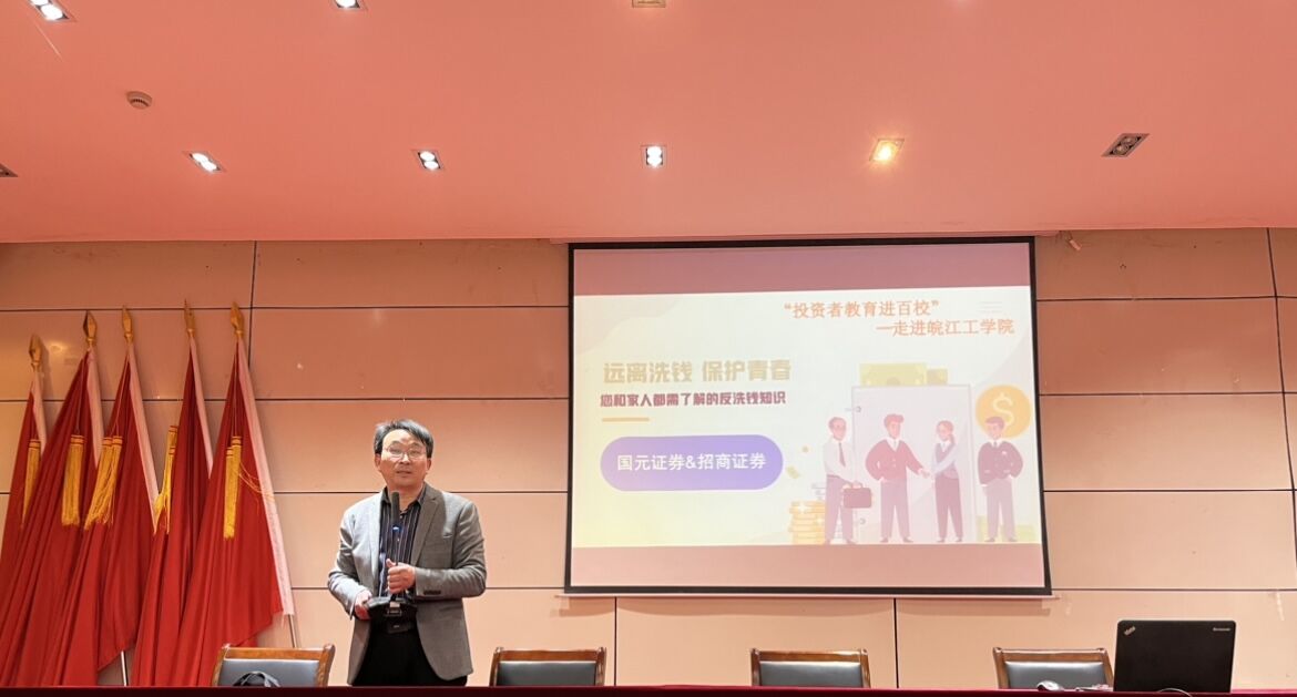 为进一步增强在校学生的法制观念,提高反诈防骗自我保护意识和能力,强化打击治理电信网络诈骗防范工作,11月24日下午,beat365官网学工部邀请国元证券马鞍山分公司走进beat365正版唯一入口必一,与各二级学院学生干部代表共同开展“远离洗钱 保护青春”反诈骗主题宣传讲座。国元证券马鞍山分公司王娟担任此次讲座的主讲人。学工部副部长江春明主持。