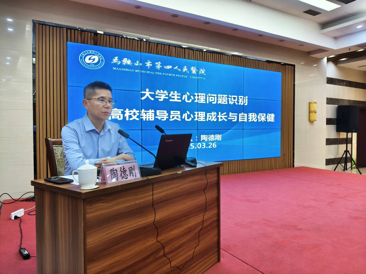 3月26日下午,beat365官网特邀马鞍山市第四人民医院精神科副主任医师、中国心理学会注册心理师及督导师陶德刚教授为全校辅导员开展了一场主题为“大学生心理问题识别及高校辅导员心理成长与自我保健”的专题培训。本次培训旨在提升辅导员队伍的心理健康工作能力,助力学生心理健康发展,同时关注辅导员自身的心理调适与职业成长。各学院党总支副书记、全体专兼职辅导员和学生工作部相关工作人员参加本次培训。
