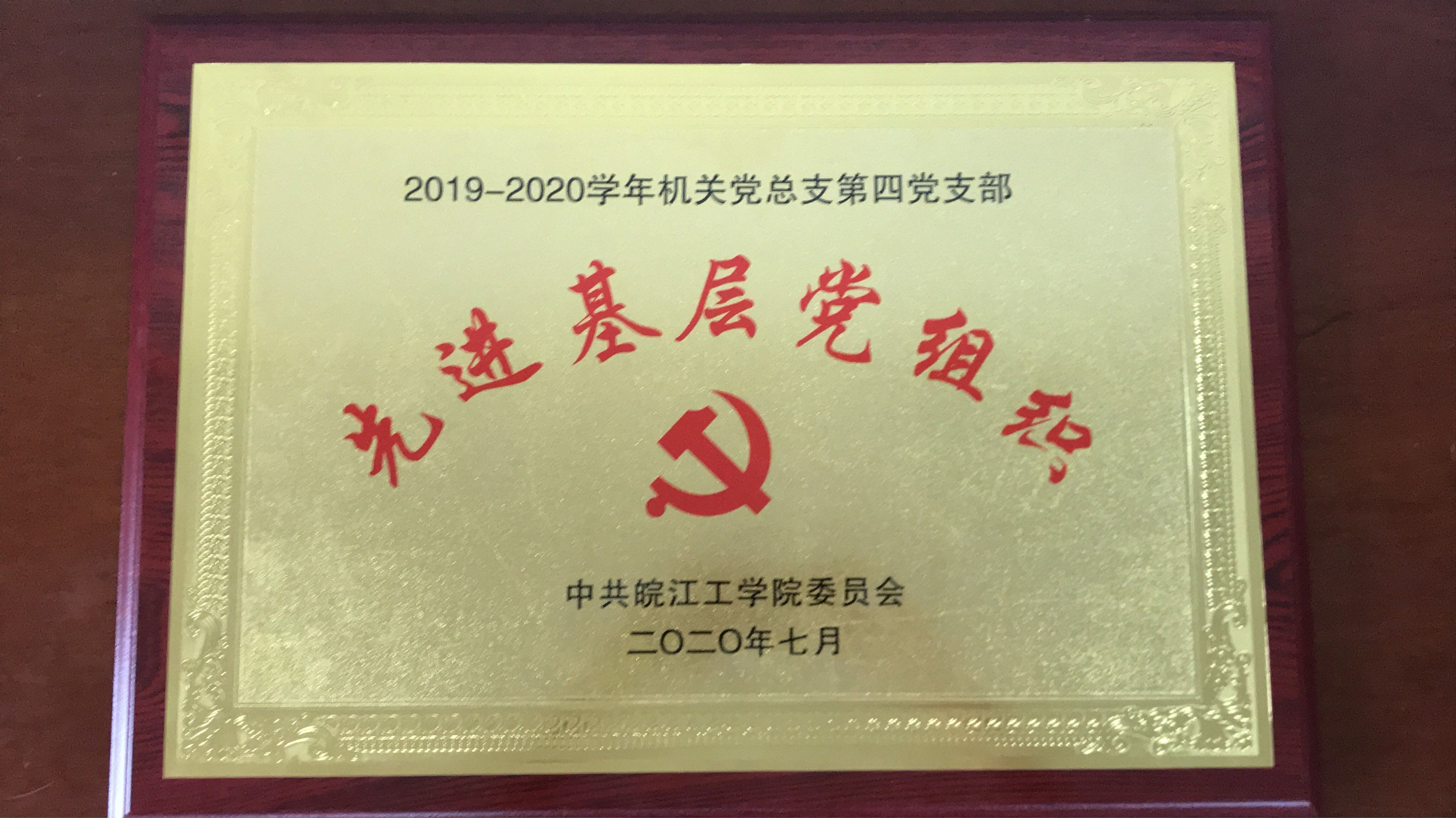 机关党总支第四党支部荣获beat365正版唯一入口必一2019-2020学年“先进基层党组织”荣誉称号