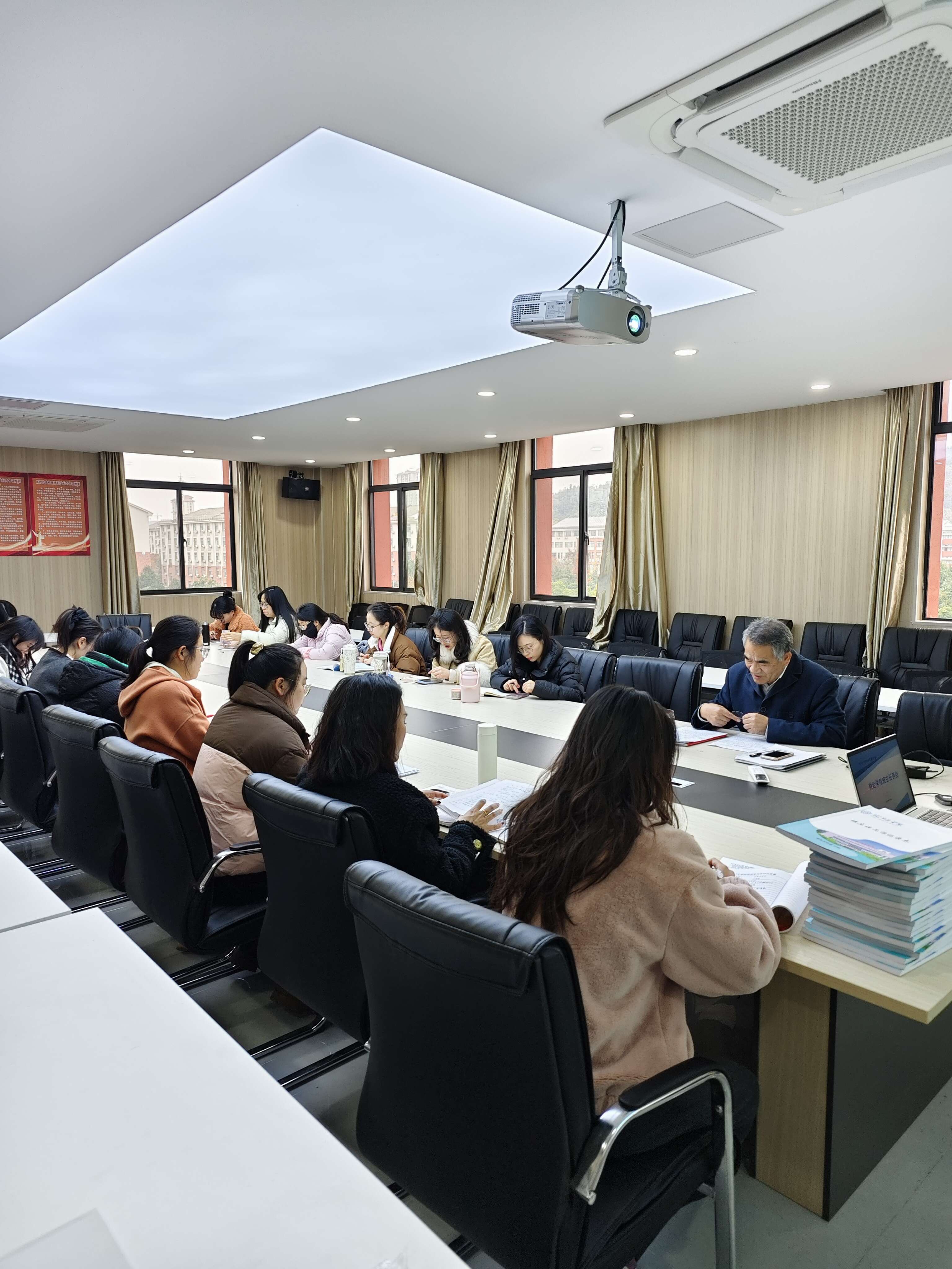 12月4日下午,财经学院在弘毅楼517会议室召开党总支中心组学习扩大会。此次会议旨在深化对学风建设的认识,提升人才培养质量,营造积极向上的学习氛围。会议由学院党总支书记杨安胜主持,党总支副书记谢清雅、党总支组织委员邰玉姣、纪检委员裴钦、青年委员刘玉婕、学生支部书记及班主任、辅导员参加了会议。