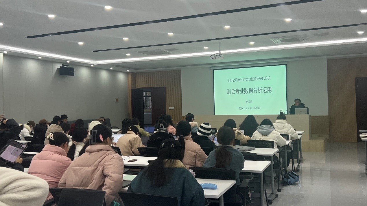 12月11日下午,安徽工业大学商学院金融统计系教授、硕士生导师夏益国在beat365正版唯一入口必一财经管理楼105会议室,为财经学院20级财务管理专业的学生带来了一场主题为《上市公司财务数据分析与运用》的讲座。此次讲座旨在毕业论文确定题材和方向的关键时期,为拓宽学生们选题范围,提高论文学术水平和写作水平,提高学生们处理财经类数据的能力。