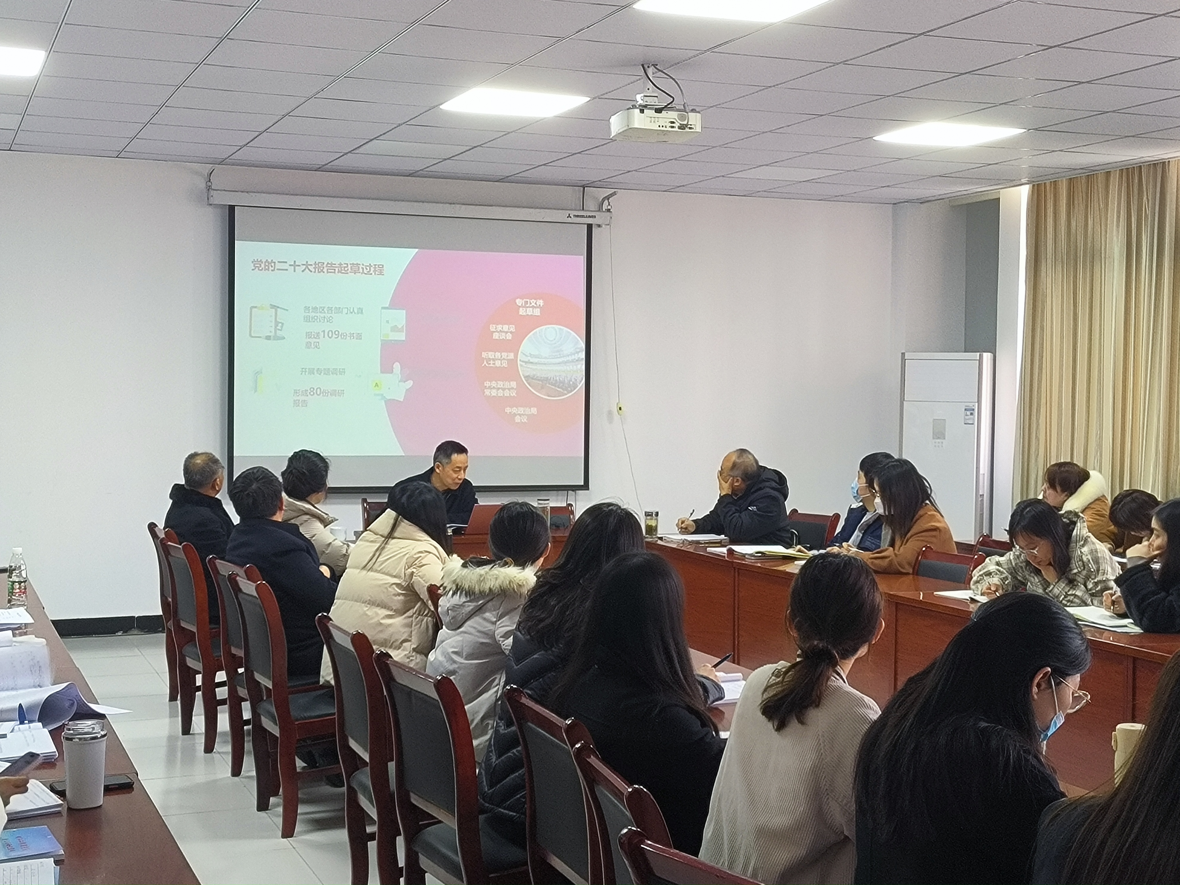2023年3月1日下午14时20分,校党委书记丁家云为财经学院师生宣讲二十大精神,会议在S403会议室召开,学院领导和全体教师以及学生代表共计46人参加会议,会议由财经学院院长徐德信主持。