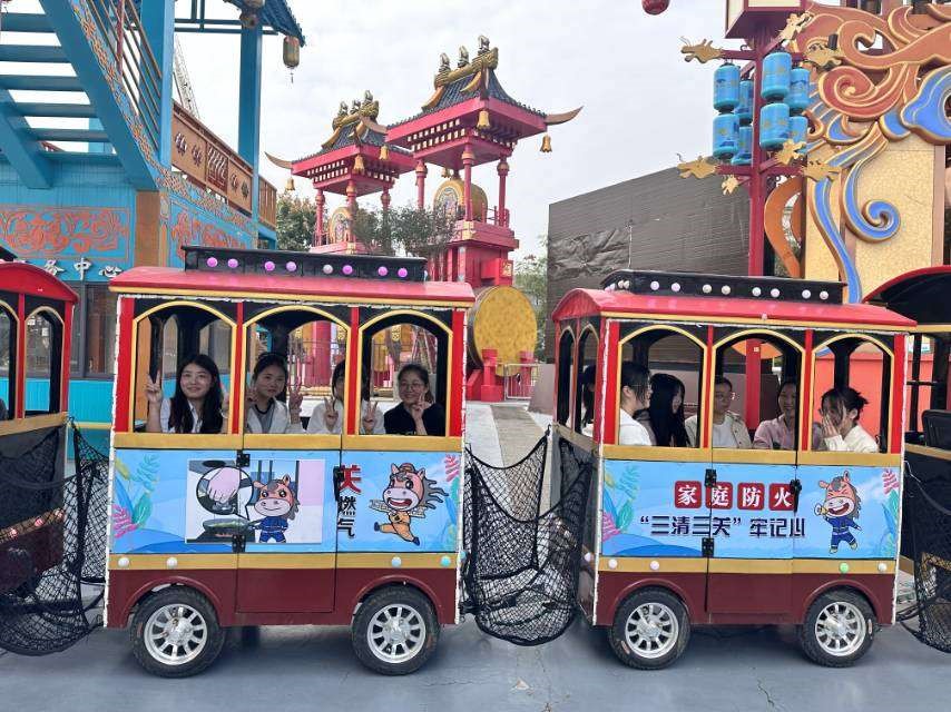 最后,在场的同学们还坐上了消防宣传的小火车。轻松愉悦的结束了消防演练实践活动。