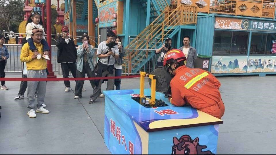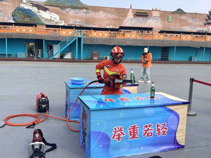 在“举重若轻”环节中,消防员手持30多吨扩张力的消防液压钳将啤酒瓶夹起,呈一字排开。在“鞭辟入里”活动中,消防员手持30公斤重锯去锯开鸡蛋且不伤蛋白,技艺精湛,令人钦佩。
