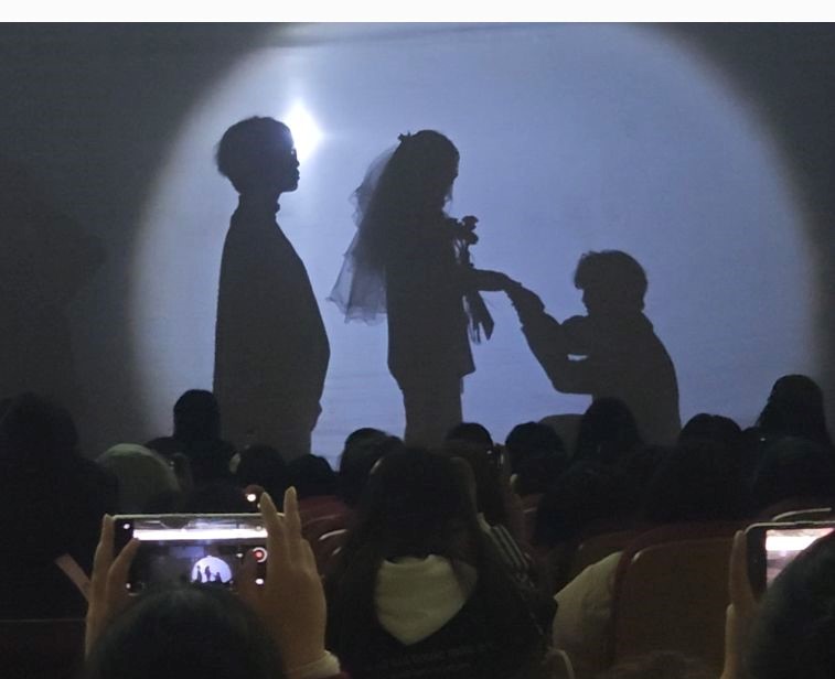 游戏环节结束之后,晚会进入到了令人期待的下半场—展望未来。首先出场的是财经学院学生会宣传部带来的幕布剧表演《时光里的爱》,生动形象的演绎了女孩从出生到成长到结婚的过程,让观众深刻感受到了父母的对子女沉默无声的爱,并为之动容。