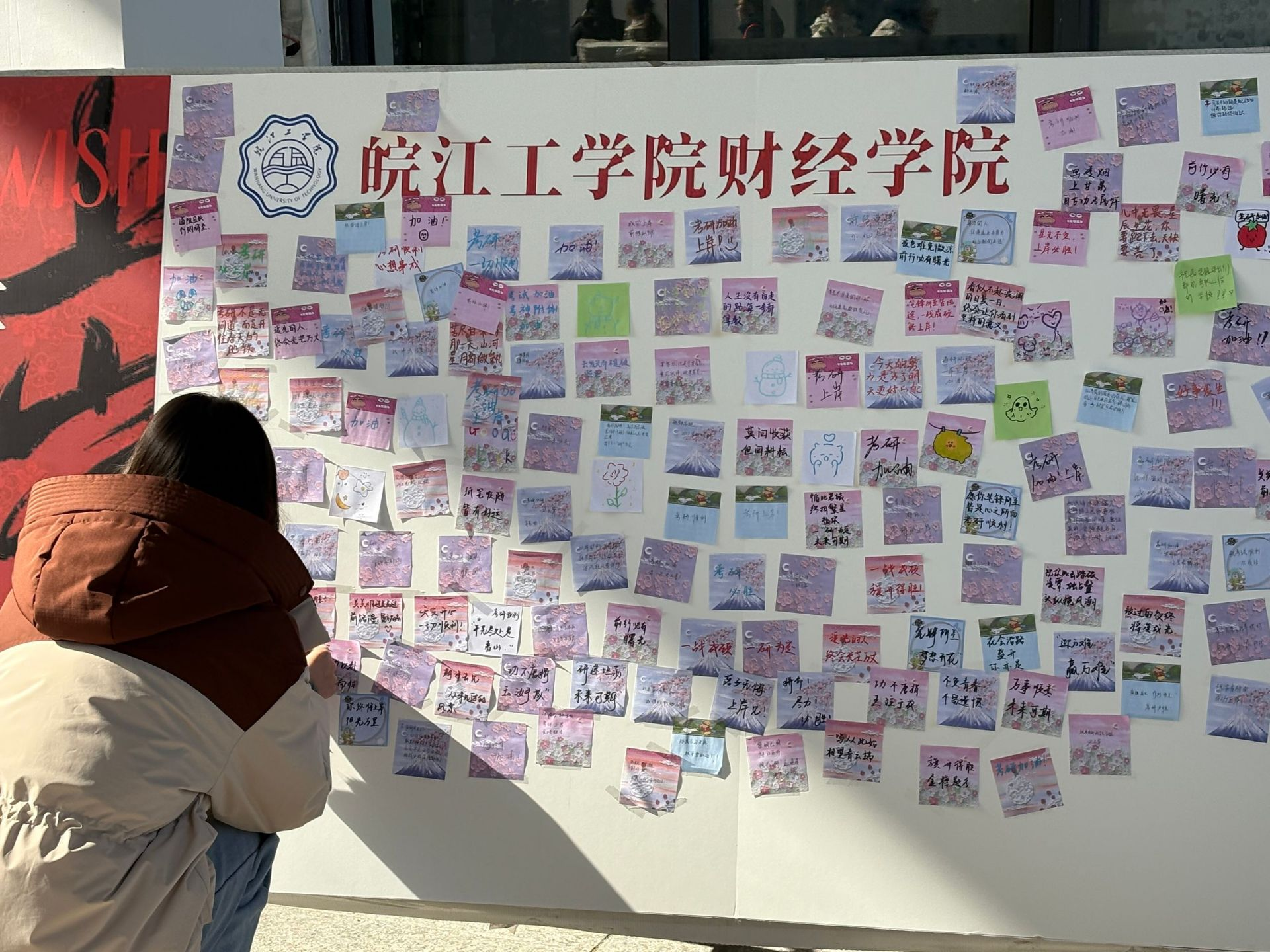 12月16日下午,郑蒲港校区率先启动祝福传递活动。在财经学院学生会的组织下,该校区学生积极参与祝福卡片与视频的制作。活动现场,学生们认真书写祝福话语,“笔锋所至,梦想花开”、“沉着应考,金榜题名”等真挚寄语被精心记录。部分学生还创新采用手绘插画、折纸艺术等形式表达对师长们的祝愿。活动现场共收集祝福卡片200余张,录制祝福视频15条。
