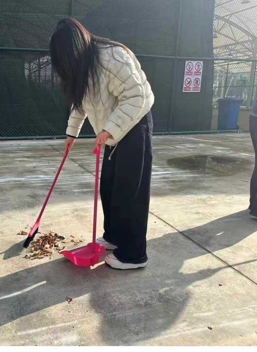 活动筹备阶段,参与志愿活动的同学们主动集结、共同商议,结合校园各区域卫生实际情况科学分工:4名志愿者负责宿舍区,重点清理卫生死角与杂物;3名志愿者负责体育场,清理落叶纸屑等废弃杂物;另有3名志愿者负责食堂周边,清扫散落垃圾,每位志愿者明晰任务,为活动顺利开展筑牢基础。当日下午,清扫活动正式启动,志愿者们携带工具奔赴各区域,宿舍区细致清扫不留死角,运动场集中清理恢复整洁,食堂周边紧盯边角守护环境,大家不畏脏累、默契协作,忙碌的身影成为春日校园里的暖心风景线,经过辛勤付出,校园环境焕然一新。