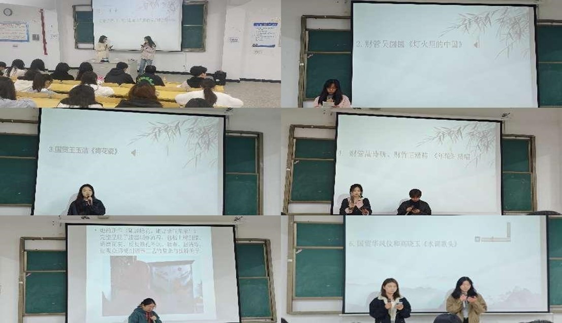 该活动以小组比赛的形式进行。选手们表演内容丰富多样,包括诗词朗诵、舞蹈表演、音乐表演、PPT演讲等。她们以独特的方式演绎了中华文化的精髓。其中诗词朗诵如《文化传承之光》、《灯火里的中国》选手们以声传情,将古典诗词的魅力传递给听众;PPT演讲通过李子柒回归这一热门话题为学生们介绍了中国传统手艺雕漆同时也能够引发学生对传统文化的兴趣与热爱;精彩的舞蹈表演和音乐表演也为现场观众带来了视听的双重盛宴。同时,比赛还设置了现代舞、流行歌曲演唱等环节,体现了传统与现代的完美融合。