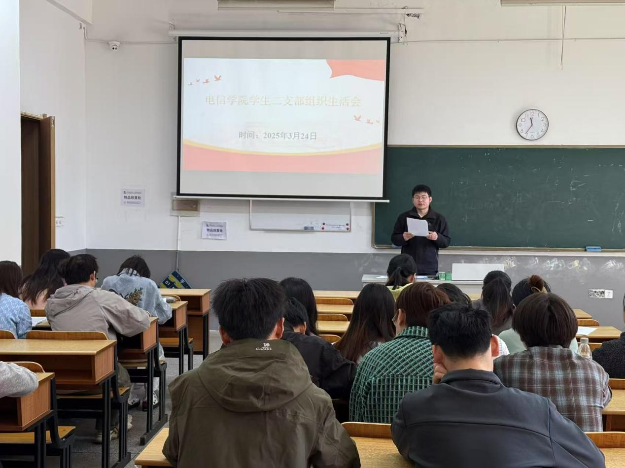 为深入学习贯彻党的二十届三中全会精神、巩固深化党纪学习教育成果,按照校党委及学院党总支要求,电信工程学院学生第一、第二党支部分别于2025年3月24日和25日召开2024年度组织生活会暨民主评议党员大会。会议由党支部书记任一君、杨洋主持,支部全体党员参会。