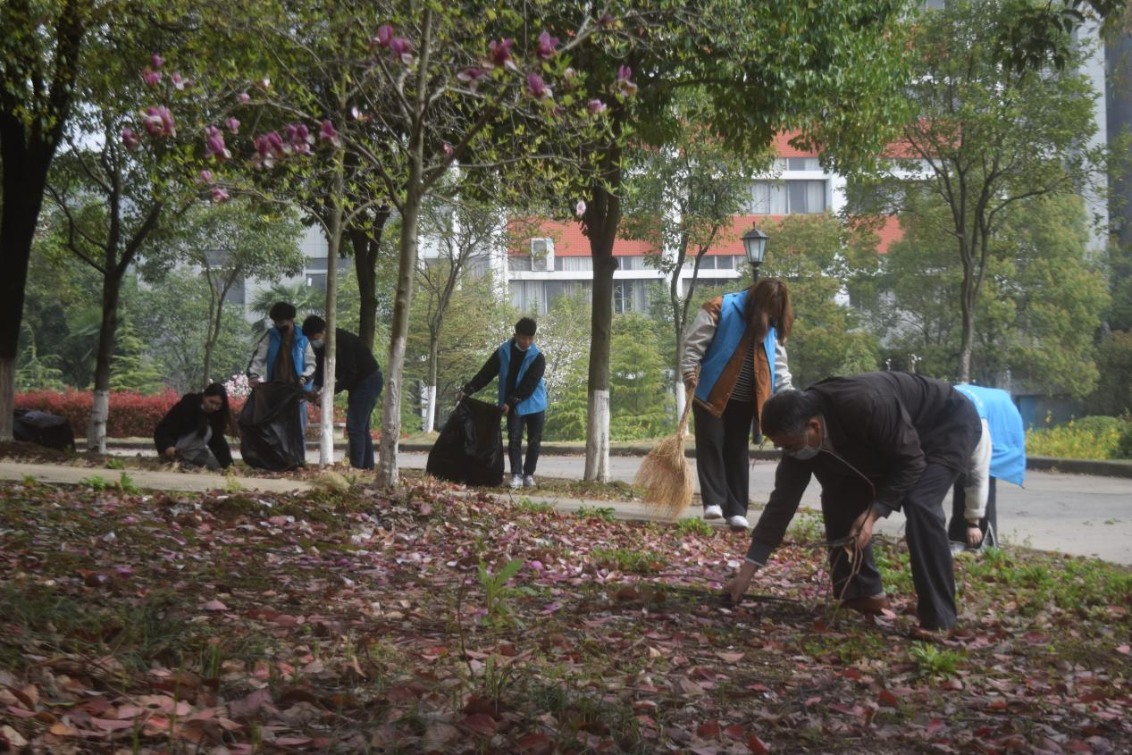 同志们或是用扫帚堆起来沉积的落叶,或是用手捡起路边的垃圾,他们让环境焕然一新,为美化校园贡献了力量,用实际行动诠释了全心全意为人民服务的宗旨。