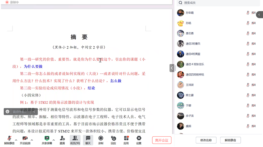 2024年5月10日晚20点-22点,通信工程教研室在线开展毕业设计集中指导。会议由教研室主任张静主持,副院长纪萍、通信工程教研室全体教师及20通信工程全体同学参加了会议。
