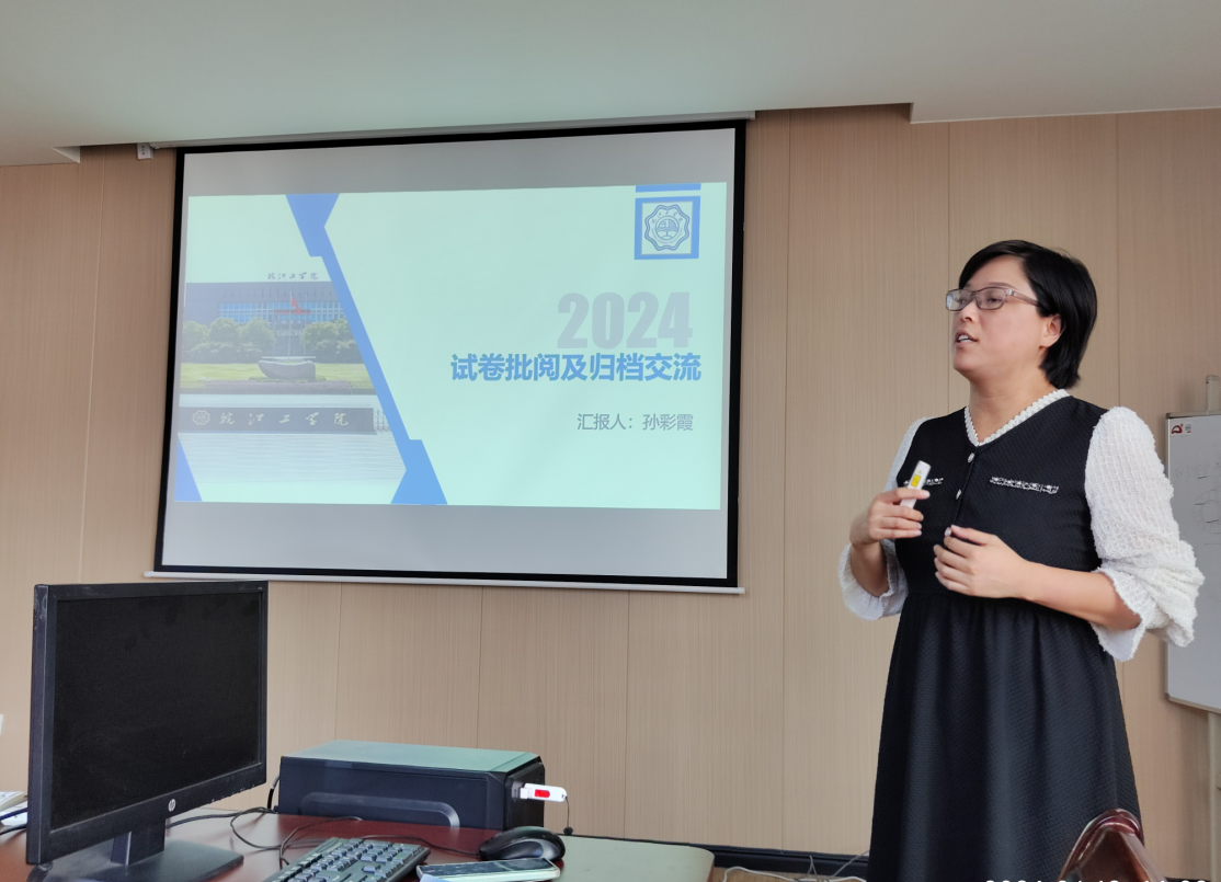 2024年6月12日下午2:00,电信工程学院在敏行楼520会议室召开试卷批阅及归档材料规范的经验分享会。分享会由副院长纪萍主持,电气工程及其自动化教研室副主任孙彩霞老师主讲,全体教师参加。此次分享会旨在进一步提升学院的教学文档的归档质量,大力推动青年教师在试卷批阅及归档工作中的规范化、标准化。