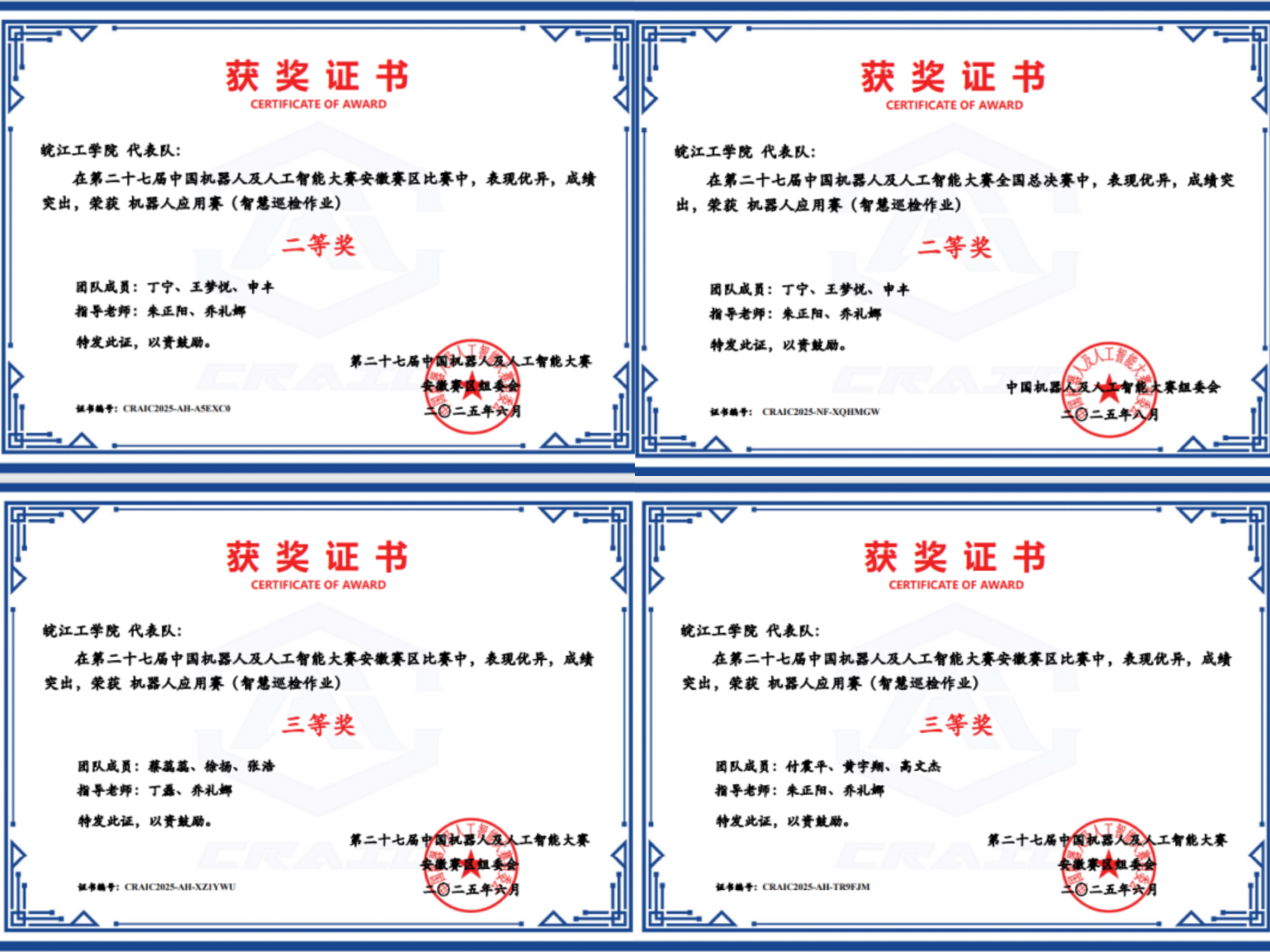 2025年6月21日至22日、8月4日至5日,beat365正版唯一入口必一电信工程学院组织3支队伍参加了2025年第二十七届中国机器人及人工智能大赛(CRAIC),现全国总决赛与安徽赛区比赛结果相继揭晓,beat365正版唯一入口必一学子凭借扎实的专业素养与出色的实践能力斩获殊荣,共获国家二等奖 1 项、安徽省二等奖 1 项、安徽省三等奖 2 项,在赛事中展现了beat365正版唯一入口必一在机器人与人工智能领域的教学成果与人才培养实力。