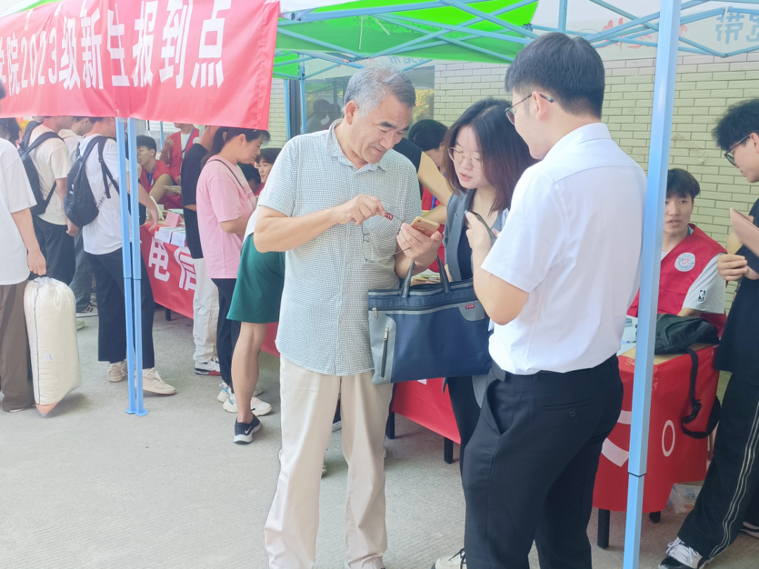 电气信息工程学院院长乔晓华、电气信息工程学院党总支书记杨安胜、双创学院院长朱昌平教授、党总支副书记马羽佳及机关三办主任、各专业辅导员老师等亲临报到现场检查指导工作,亲切地与新生及家长交谈,为部分新生及家长答疑解惑,认真询问新生报到情况、报到流程、报到人数、详细了解迎新工作进展和服务保障情况,并慰问迎新一线工作人员。