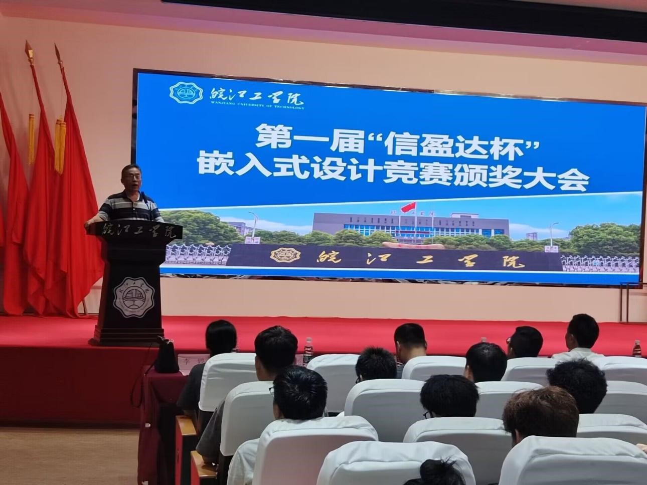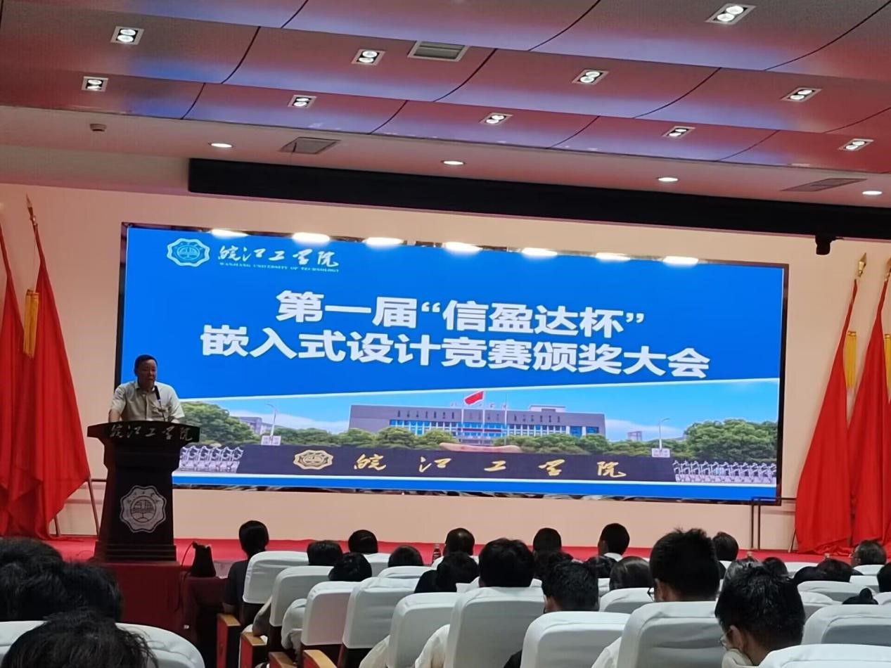 为培养学生们的创新创业能力,探索育人新途径,厚实学生们的专业基础,激发学生们的学习热情。电信院联合南京信盈达电子技术有限公司举办了第一届"信盈达杯"嵌入式系统创新设计竞赛。2023年9月20日(星期三)下午19:00在霍里山校区图书馆报告厅举办第一届“信盈达杯”嵌入式系统创新设计竞赛颁奖大会,表彰在“信盈达杯”嵌入式系统创新设计竞赛中表现优异的同学。
