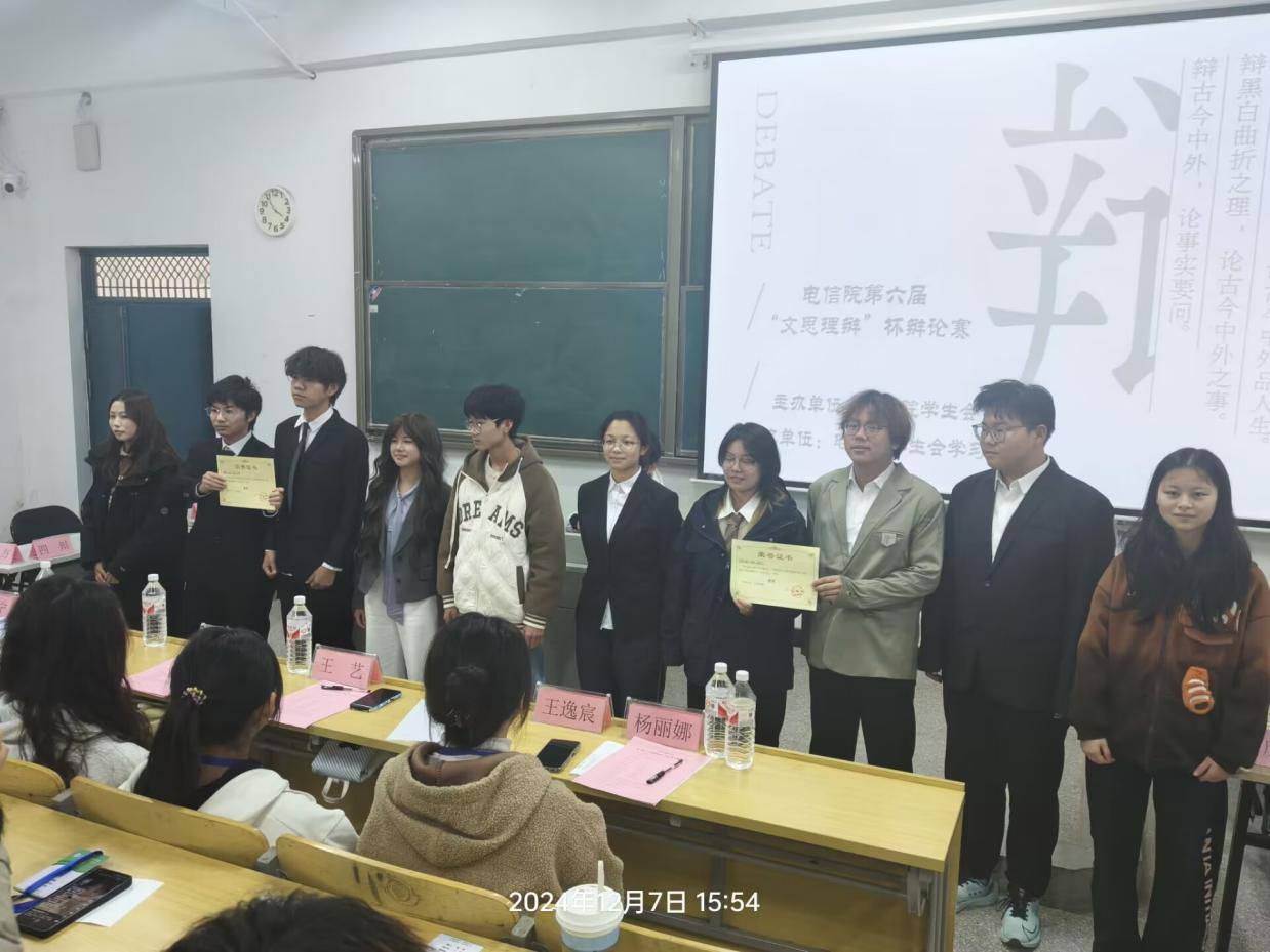 此次辩论赛不仅为电信院的学生提供了一个展示自我、锻炼能力的平台,同时也激发了大家对当前社会问题的关注和思考。同时,我院也将继续秉承“以赛促学、以学促行”的理念,积极举办各类学术与实践活动,为学生的全面发展搭建广阔平台。(电信工程学院 供稿)