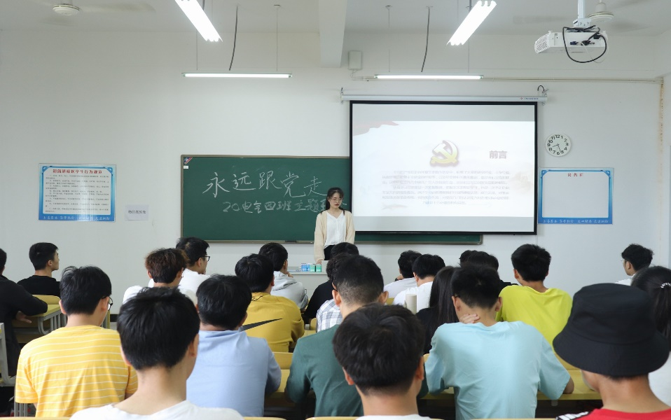 5月27日上午八点,电气信息工程学院20级电气4班在C306教室开展了“永远跟党走”主题班会活动,辅导员刘华辉老师主持,并邀请了同年级其他班级团支书及委员参加。