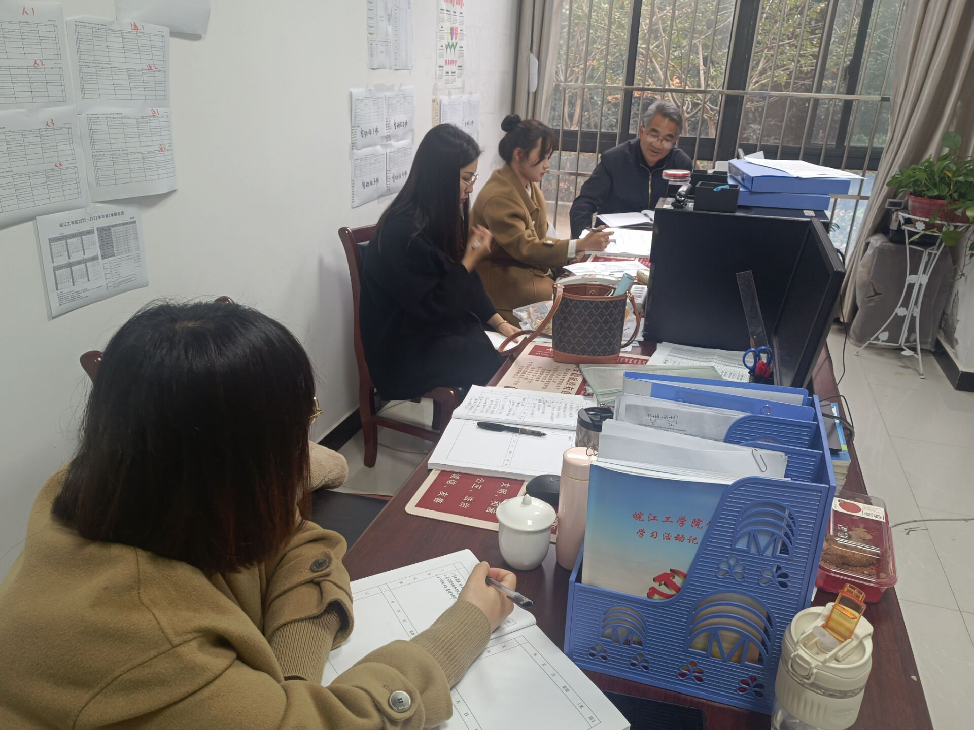 马羽佳副书记听取辅导员汇报后提出:一是主题班会和学生谈话在班级管理中要同时抓,两者相辅相成,两手抓两促进。二是工作中遇到的难题可以及时与学院沟通,学院是辅导员开展工作坚强的后盾。