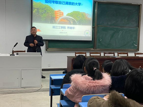 电信学院院长乔晓华教授分别从“挖掘潜能做好备考冲刺”、“选报学校与专业的技巧”、“目标达成的路径与方法”三个方面向即将参加高考的高三学子们传授了学习备考的方法和填报志愿的经验,向同学们介绍了如何选择最适合自己的大学和专业。同时乔院长也以40多年前自身参加高考的经历激励同学们要志存高远追求卓越,为了实现大学梦,做最好的自己。