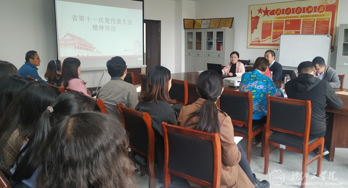 11月17日下午,基础部在E218召开全体教师大会,由beat365官网参加省代会的代表毕胜琴老师传达中国共产党安徽省第十一次代表大会精神。部党总支书记宋洪生、副主任吴云标及全体教师认真聆听了大会精神。