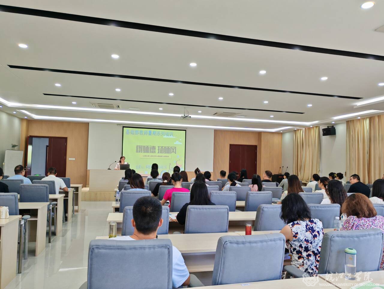 为强化师德教育与管理,对师德失范行为早提醒、早纠正、早发现,进一步完善师德师风建设长效机制,7月5日,通识教育学院开展师德师风专题培训。本次培训由院长助理毕胜琴副教授主讲,全体教师参加此次培训。