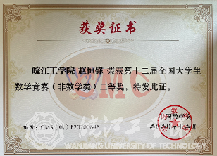 | 赵恒锋 | 17给排水科学与工程 | 安徽省二等奖 |