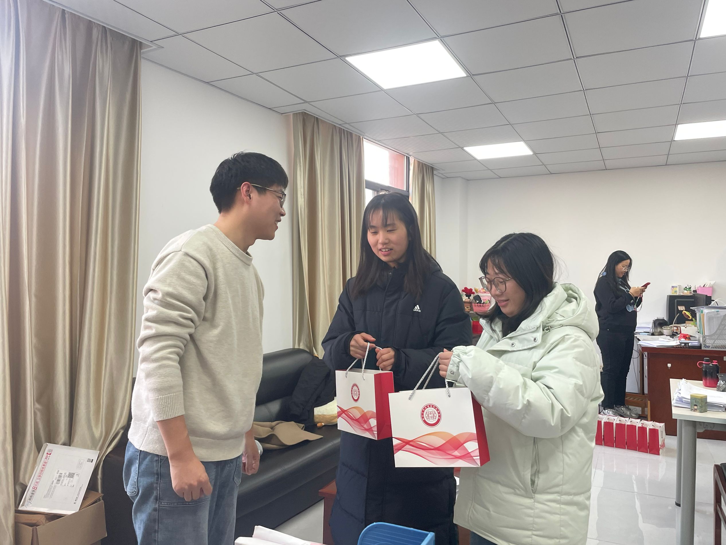为进一步增强2025届考研学子备考信心,提振复习冲刺阶段的士气与决心,管理学院于12月17日开展2024年考研学生慰问活动。院党总支书记宋洪生、分团委书记李明仁和毕业班辅导员为考研学子发放专属“考研大礼包”,并送上温暖祝福。