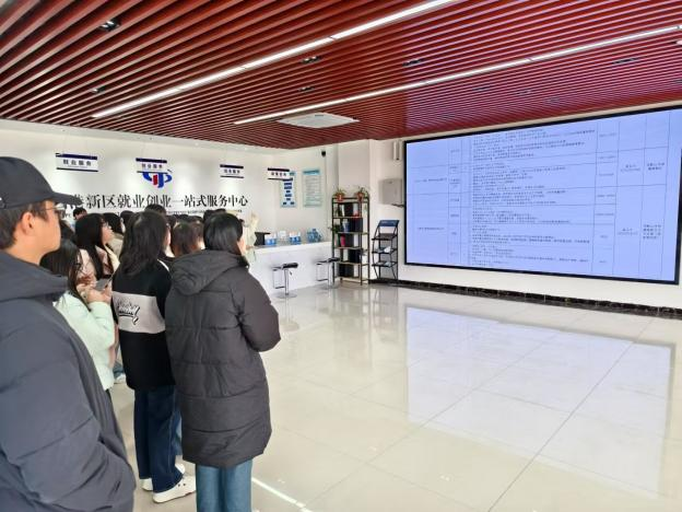 随后,同学们集体前往郑蒲港新区人力资源市场,详细了解了该市场的成立背景及产业园的未来发展规划。在就业创业一站式服务中心、招聘大厅、直播间及仲裁庭的参观过程中,同学们对求职技巧、职业规划等方面有了更加清晰的认识。期间,同学们积极与相关工作人员互动,就关心的就业问题进行深入咨询,收获了许多有价值的建议。