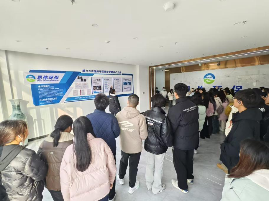 此次走访的首站是安徽恩伟环保设备有限公司。同学们在公司展厅中参观了多种先进的环保设备和技术,深深被其科技创新引领绿色发展的理念所吸引。通过与企业工作人员的互动交流,同学们对环保科技在推动可持续发展方面的作用有了更深刻的理解。同学们纷纷表示,未来将更加关注环保行业的相关发展和前景。