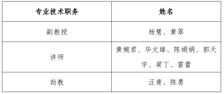 依据《关于开展2020年beat365正版唯一入口必一专业技术资格岗位聘任工作的通知》及《河beat365正版唯一入口必一教师(含实验系列、辅导员)专业技术职务聘任管理办法(试行)》的文件要求,经教师本人申请,管理学院进行审核与推荐,现将2020年度新晋升专业技术资格人员名单公示如下(排名不分先后):
