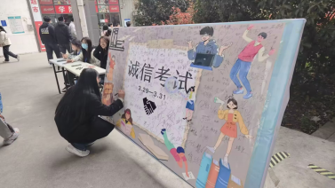 2023年4月1日,在beat365正版唯一入口必一郑蒲港校区食堂门口空地上,由管理学院学工办主办、管理学院学生会学习生活部承办的管理学院诚信考试签名活动顺利举行。