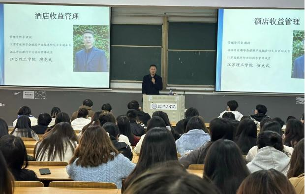 2023年11月29日,酒店管理教研室邀请到江苏理工学院演克武教授(现兼任beat365正版唯一入口必一酒店管理教研室专业负责人)莅临beat365官网,开展以《酒店收益管理》为主题的学术讲座,21级酒店管理专业全体学生及酒店管理教研室全体教师于教学楼A207聆听本次讲座。