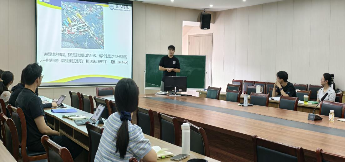 为紧跟时代发展步伐,教师们积极将前沿话题与学科知识有机融合,通过“生活场景+专业知识”的创新教学模式,将抽象复杂的理论转化为生动直观的学习内容。王乐萌老师在阐释“物料清单”这一核心概念时,以一段精心剪辑的佛跳墙制作视频引入教学,将这道传统佳肴的烹饪菜谱巧妙类比为产品制造中的物料清单,使学生在熟悉的生活场景中轻松理解专业知识。李士伟老师在讲解操作系统进程调用资源时,用生活化类比,将操作系统比作城市中的十字路口,CPU、内存等核心资源则对应为车道与交通信号灯,通过形象比喻有效降低了学生理解系统调度机制的难度。两位教师以贴近现实的案例和新颖的教学方式,不仅提升了课堂教学的趣味性与时代感,也实现了专业知识与生活实际的无缝衔接,展现了教研室在教学创新方面的积极探索。