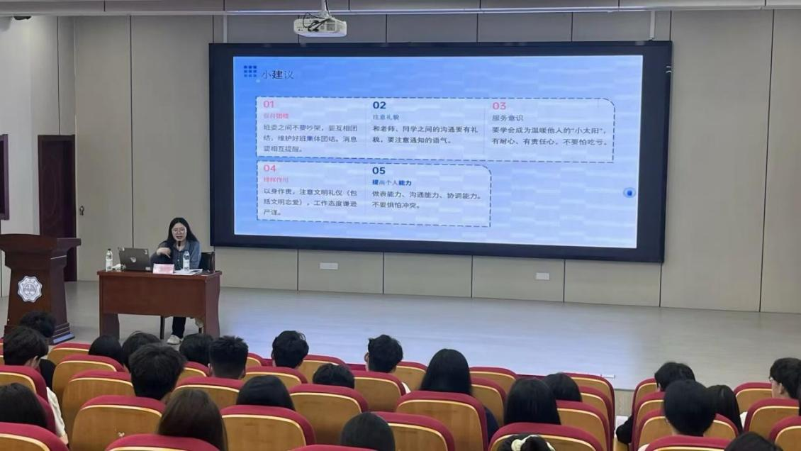随着3月份以心理、共青团工作为主题的两讲课程结束,4月以高年级学生干部代表为主讲人,围绕“凝聚力量,担当使命——做新时代优秀学生干部”主题开展培训。学生会主席钱鸿杰同学围绕学生干部的角色与价值、核心能力、常见问题与应对策略、行动倡议等方面展开分享。他指出,学生干部需兼具服务者、引领者、学习者三重角色,既要做好师生沟通的桥梁,解决同学实际需求,又要以身作则传递正能量,并在工作实践中积累组织、沟通等能力,并针对时间管理、团队协作等常见问题提出相关建议,建立传帮带机制,帮助促进经验传承。