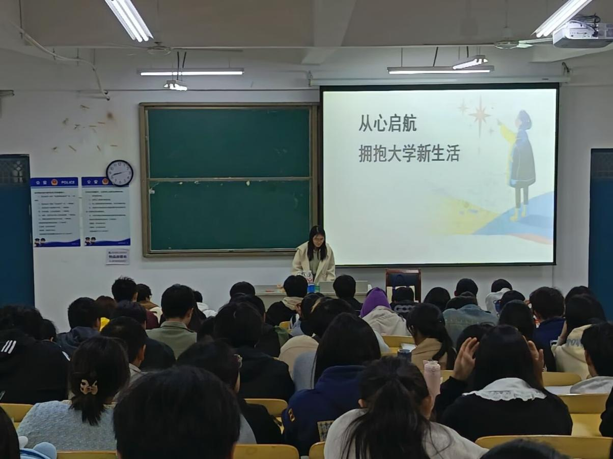 在心理健康教育专题讲座中,学院心理工作站刘霞老师以“从心启航,拥抱大学生活”为题,聚焦“真诚的自我暴露”“用心的积极倾听”与“有效的冲突协调”三大核心能力,为2025级新生提供了系统实用的心理调适方法。针对新生普遍面临的专业选择、时间管理、人际交往及思乡情绪等适应性问题,刘老师结合典型案例,逐一给出了具体可行的解决方案与应对策略。讲座现场互动热烈,同学们积极提问,与刘老师进行了多轮深入交流。与会新生普遍表示,通过本次讲座不仅掌握了科学的心理调适方法,更对即将展开的大学生活增强了适应信心与成长期待。此次活动有效助力2025级新生顺利完成心理过渡与角色转换,为以积极健康的心态迎接大学阶段的各项挑战奠定了坚实基础。