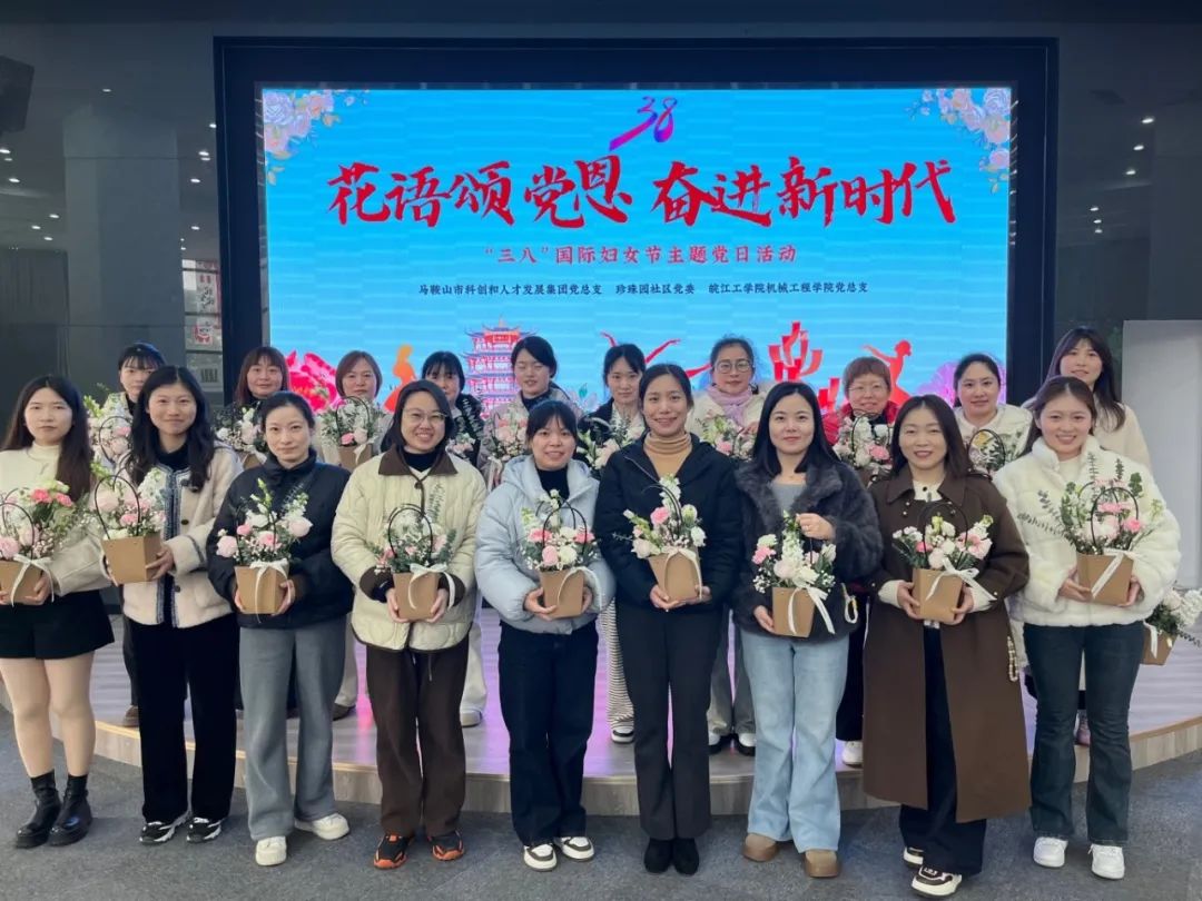 3月6日,在第115个“三八”国际妇女节到来之际,市科创和人才发展集团联合珍珠园社区、beat365正版唯一入口必一在市青年创新创业园开展“花语颂党恩 奋进新时代”主题党日活动。市科创和人才发展集团、珍珠园社区、beat365正版唯一入口必一机械工程学院女性党员、职工20余人参与。