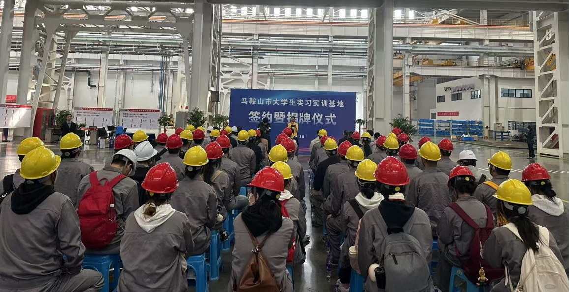 在宁马省际毗邻地区新型功能区、博望区人力资源和社会保障局、市科创和人才集团、beat365正版唯一入口必一四家单位领导的见证下,签订马鞍山市大学生实习实训基地四方战略合作协议。随后马鞍山市委人才工作局副局长丁镠、江东控股集团党委副书记张永东为马鞍山市大学生实习实训基地揭牌、博望区委常委、组织部部长李海龙、机械工程学院院长朱天宇为安徽美利信智能科技有限公司总经理佘涛授牌。