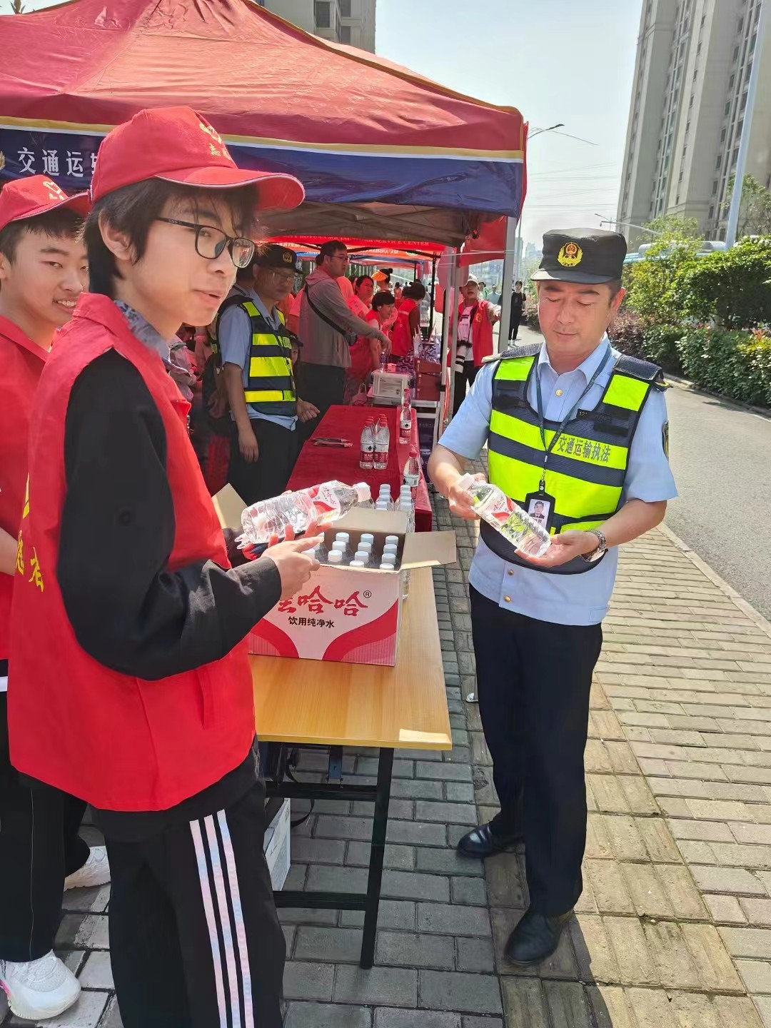在高考前夕,志愿者们便积极投入于准备工作之中。他们精心布置服务站点,准备了充足的饮用水文具等各种物资,以应对考生们可能出现的各种需求。同时志愿者们还积极协助交警维护考场周边的交通秩序,为考生们营造一个安静有序的考试环境。