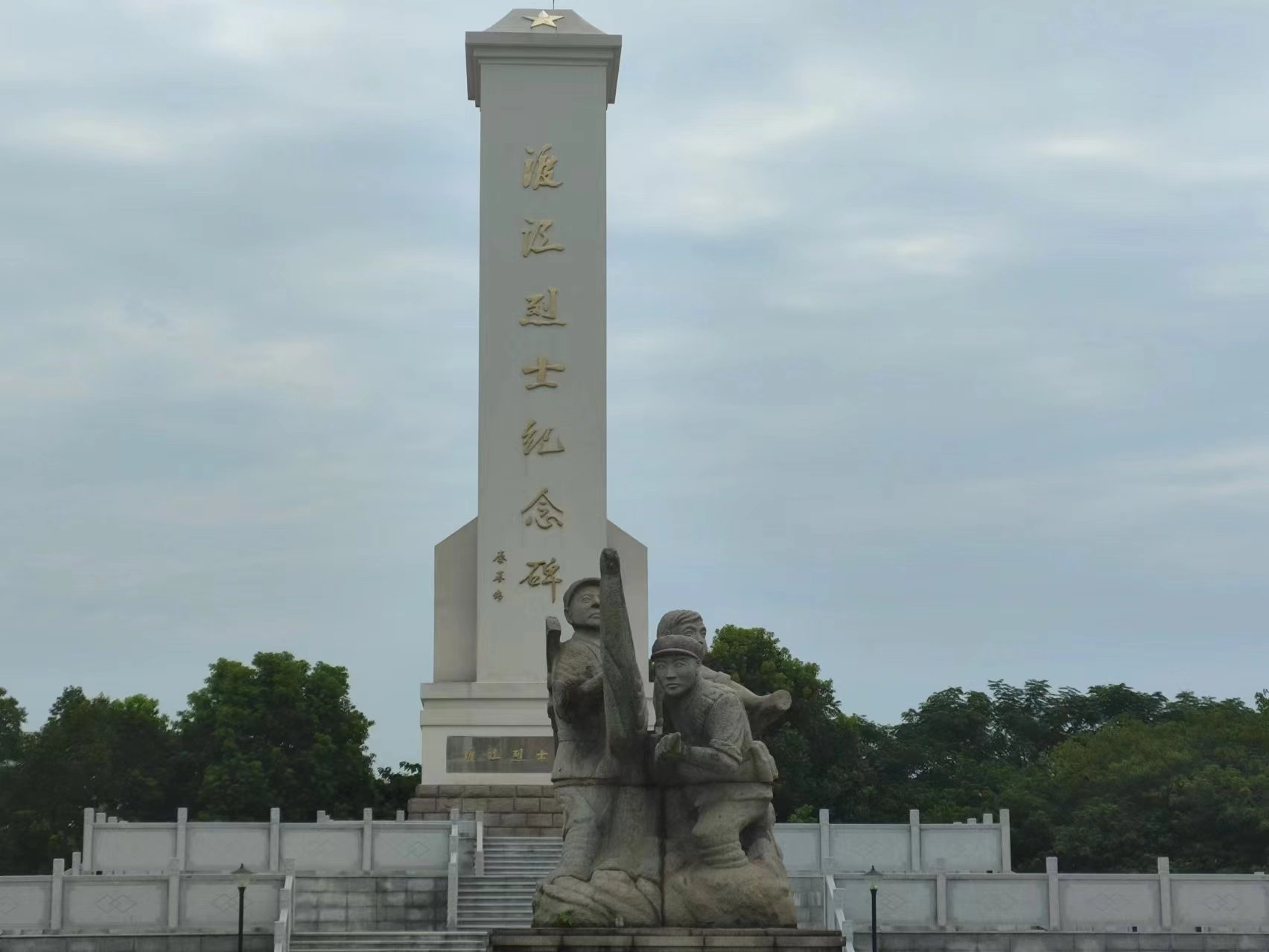 我们的第一站就是位于安徽省安庆市望江县香茗山路与雷池大道交叉口东南300米处的渡江战役烈士陵园。远远望去,清风徐徐,我不经想到一句话“前人栽树,后人乘凉”。当年前辈们用血肉之躯赢得了现在和平的时光,现在如同当年树影依旧庇护这我们遭受太阳的炽烤。无名烈士如同这里的树木“无名”一直默默付出,可是他们的功绩我们不能忘记,我们享受着当前树木的一丝丝阴凉,同时也享受着他们取下的余晖,不能忘记树木给的阴凉也不能忘记烈士的牺牲,正应为如此也不显得“无名”,再往前走一点便能看见毛主席所说的话,不仅是形容当年,也同样鼓励着我们,看着当年战斗的浮雕不由得升起一股钦佩之情,一股名为“向上“的气慢慢升起我们都敢为国家富强做出贡献乃至如同当年前辈为国家做出牺牲。