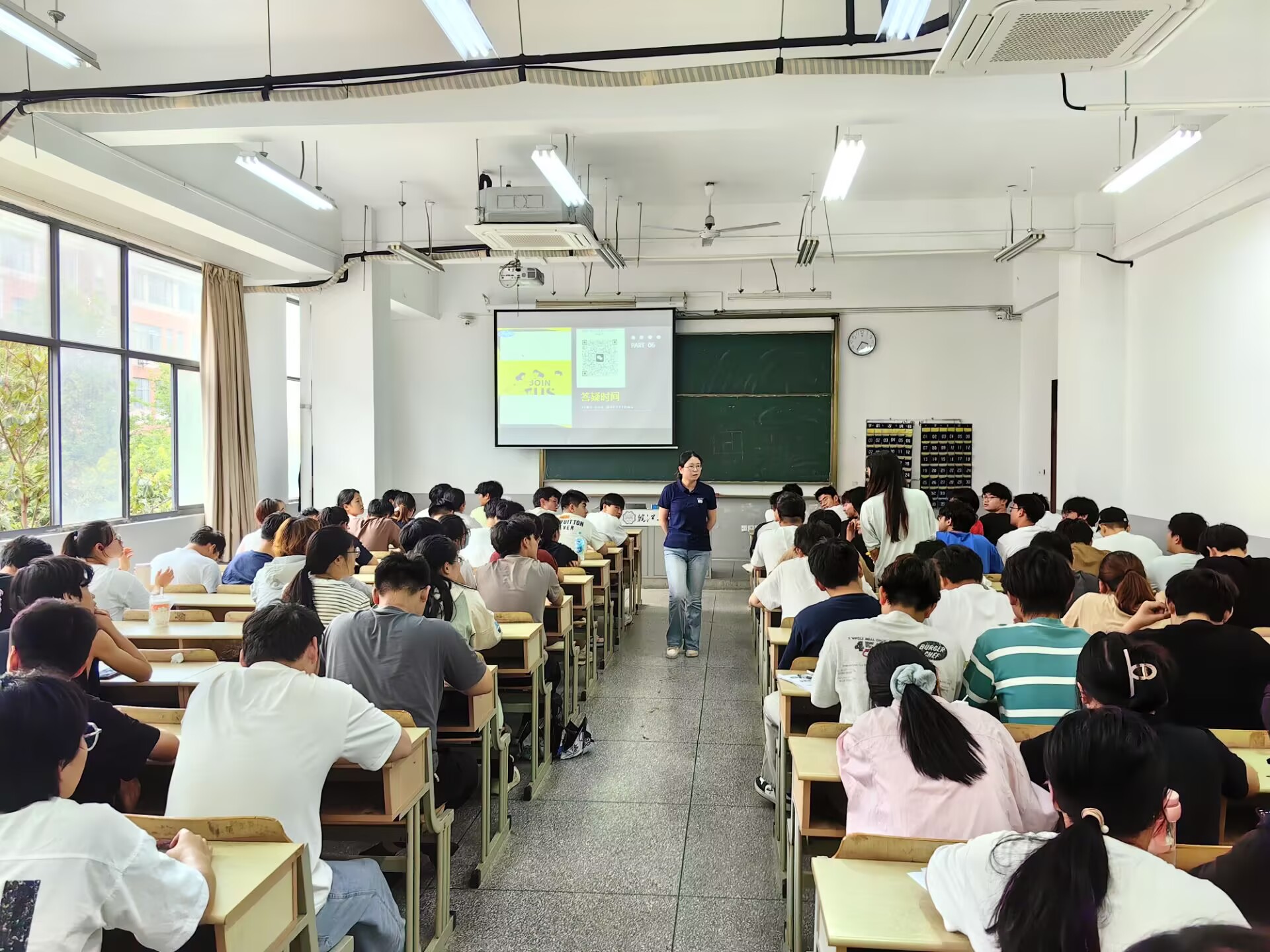宣讲会上,华孚精密科技人力资源部苏吉琴专员作为企业代表,详细介绍了公司的发展历程、核心技术及行业地位。他指出,华孚精密科技深耕智能制造领域多年,在汽车零部件、精密模具等领域拥有显著优势。苏吉琴重点解读了工程师班的培养计划,包括课程嵌入、实习实践、奖学金评定等机制,强调校企双方将通过“理论+实践”的系统培养,帮助学生快速成长为符合行业需求的卓越工程师。