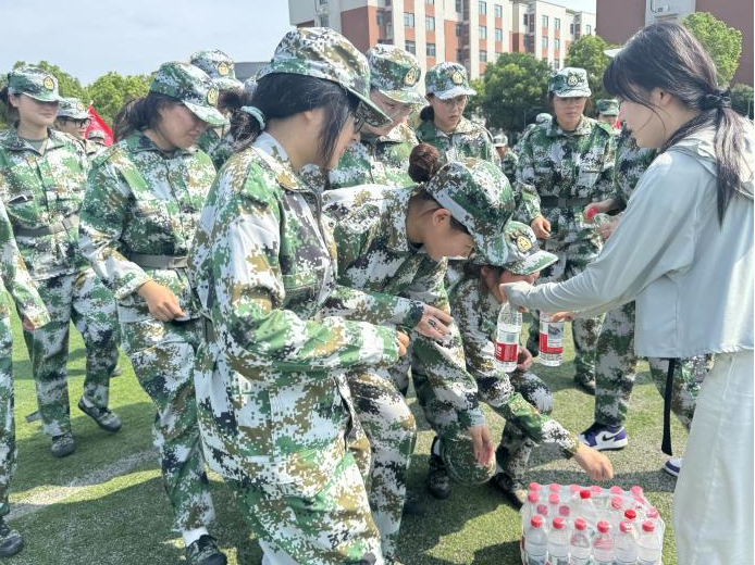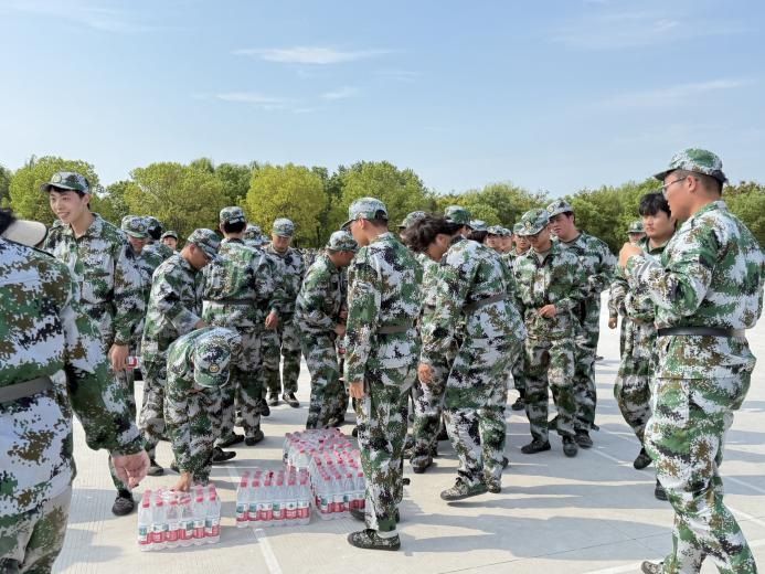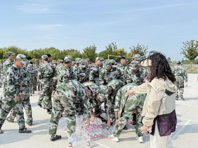 时值初秋,天气依然炎热,参训同学们精神饱满、斗志昂扬。颜婷婷副书记代表学院向承训教官致以诚挚感谢,对同学们展现出的坚韧意志和严肃纪律给予高度赞扬,勉励同学们将军训中培养的优良作风延续到今后的学习和生活中去,夯实成长根基。汪娟老师与王洪超老师为同学们分发了学院精心准备的慰问品,包括矿泉水、牛奶及防暑药品等,在细微之处传递学院的温暖与牵挂。