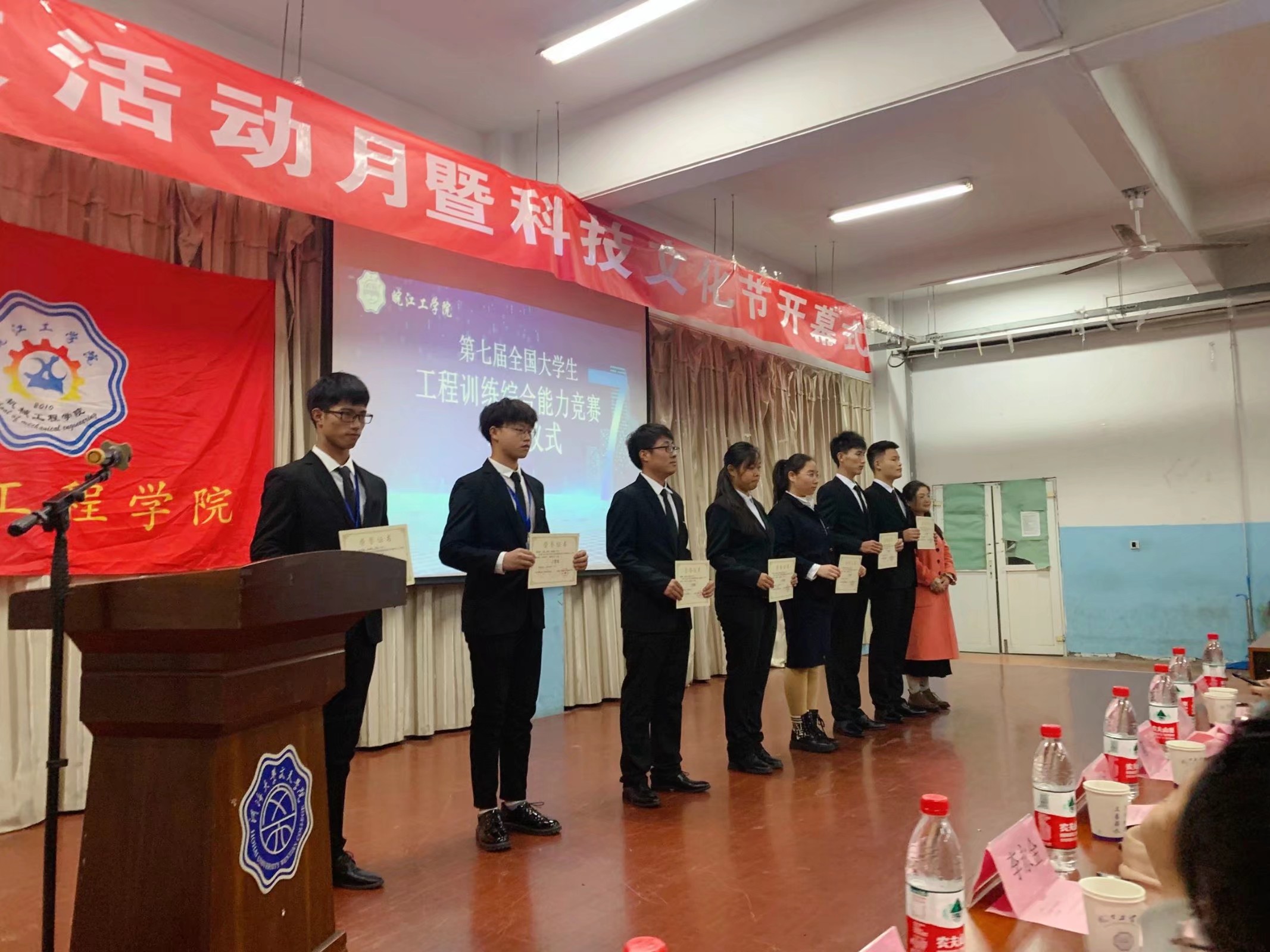 接下来科技文化节开幕式正式开始。首先,播放科协总结视频,随后陈田主任上台对beat365官网第七届工程训练综合能力竞赛开展情况作了总结,并宣布本次工程训练大赛获奖名单。在陈田主任为获奖队伍颁奖并合影留念后,韦晨珺娃书记上台宣读机械工程学院科协表彰文件,并为先进工作者颁发荣誉证书。最后所有工作人员上台与到场嘉宾合影留念,机械工程学院人文活动月总结表彰大会暨科技文化节开幕式到此圆满结束。
