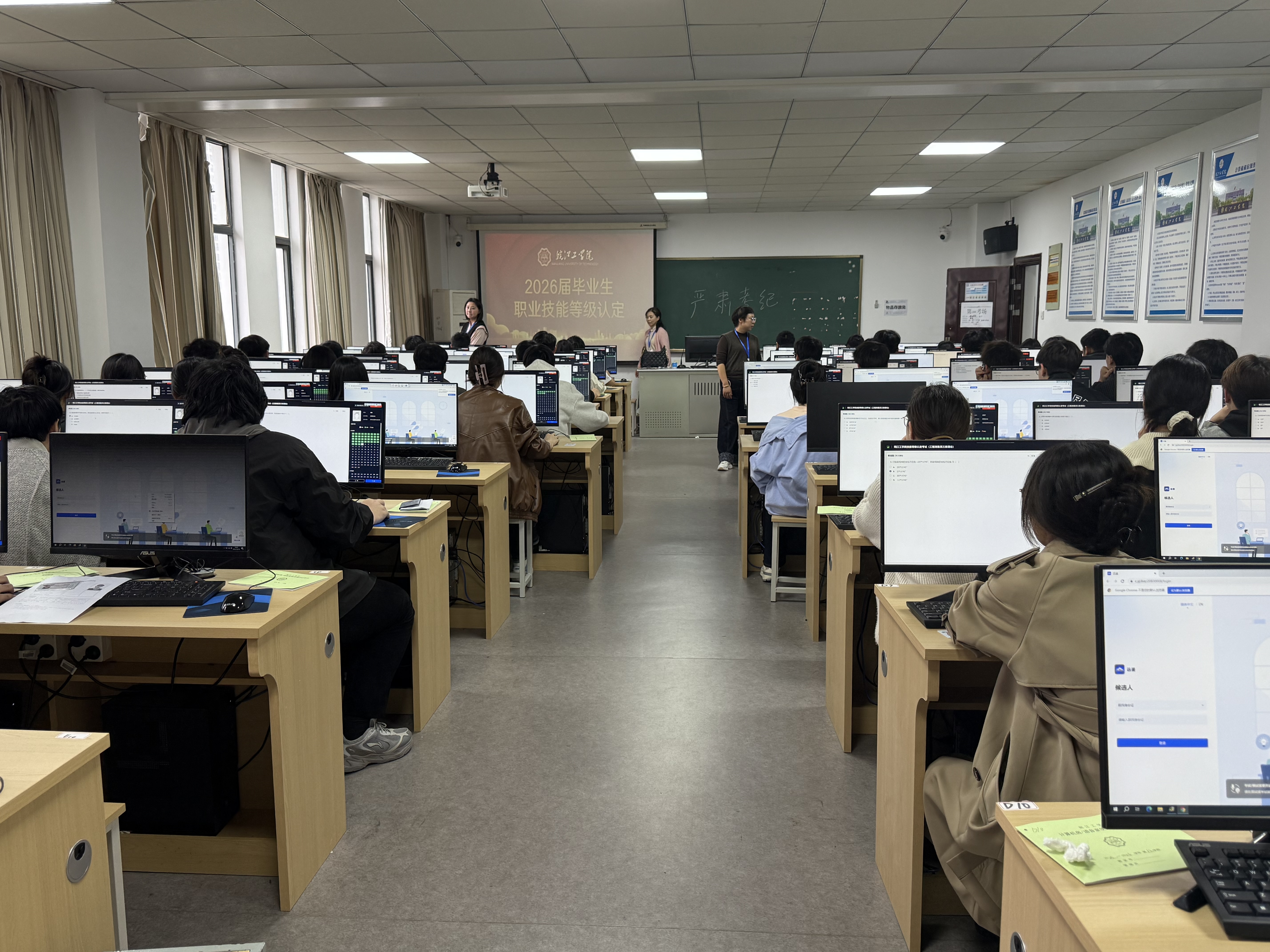 10月19日、25、26日、11月1-2日,beat365官网圆满完成2025年度第二期职业技能等级认定工作。认定工作分理论考核和实操考核两部分,涉及电工(三级)、工程测量员(三级)两个工种,电信学院、机械学院、水利学院、土木学院、管理学院等855名26届毕业生参加了认定。
